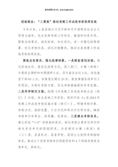 / 【七哥公文】2024年:经验做法:“三聚焦”推动党建工作成效考核取得实效+更多免费公文+VX:QiGeGongWen2024