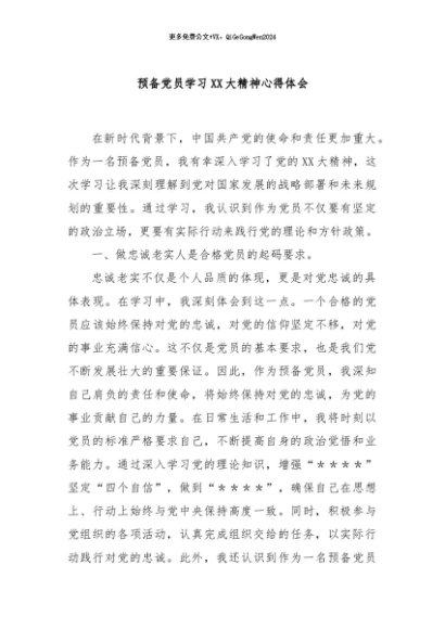 【七哥公文】2024年:预备党员学习XX大精神心得体会+更多免费公文+VX:QiGeGongWen2024