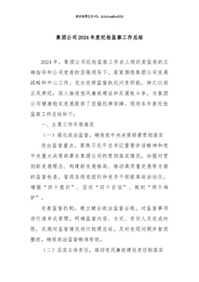 / 【七哥公文】2024年:集团公司2024年度纪检监察工作总结+更多免费公文+VX:QiGeGongWen2024