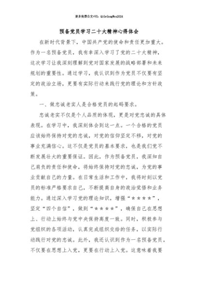 / 【七哥公文】2024年:预备党员学习二十大精神心得体会+更多免费公文+VX:QiGeGongWen2024
