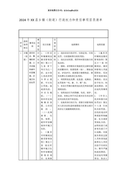 【七哥公文】2024年:2024年XX县乡镇(街道)行政权力和责任事项目录清单+更多免费公文+VX:QiGeGongWen2024