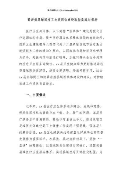 / 【七哥公文】2024年:紧密型县域医疗卫生共同体建设路径实践与探析+更多免费公文+VX:QiGeGongWen2024
