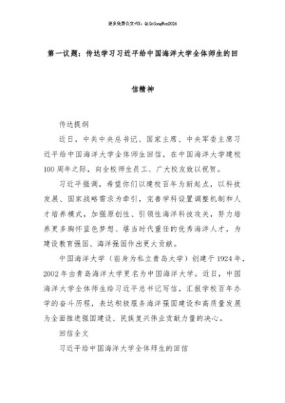 【七哥公文】2024年:第一议题:传达学习习近平给中国海洋大学全体师生的回信精神+更多免费公文+VX:QiGeGongWen2024