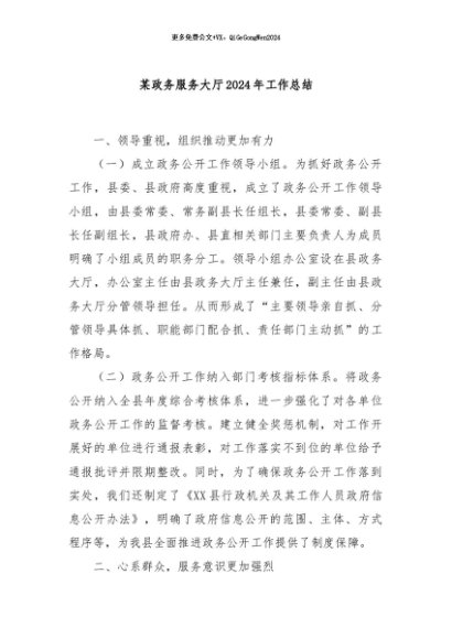 / 【七哥公文】2024年:某政务服务大厅2024年工作总结+更多免费公文+VX:QiGeGongWen2024