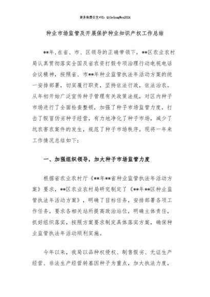 / 【七哥公文】2024年:种业市场监管及开展保护种业知识产权工作总结+更多免费公文+VX:QiGeGongWen2024