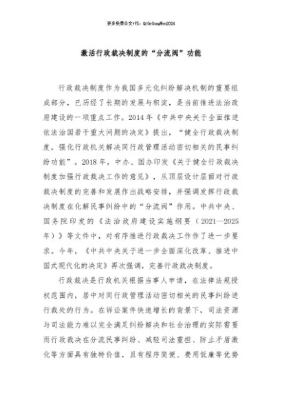 / 【七哥公文】2024年:激活行政裁决制度的“分流阀”功能+更多免费公文+VX:QiGeGongWen2024