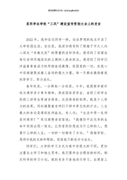 / 【七哥公文】2024年:某同学在学校“三风”建设宣传贯彻大会上的发言+更多免费公文+VX:QiGeGongWen2024