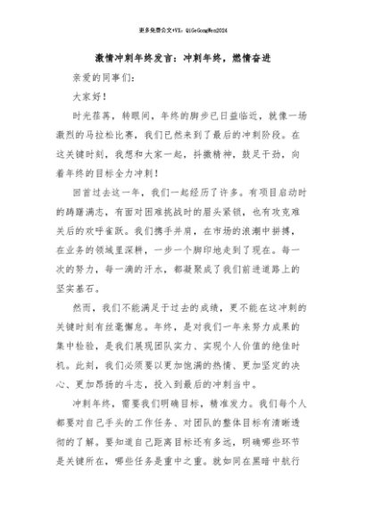 【七哥公文】2024年:激情冲刺年终发言:冲刺年终,燃情奋进+更多免费公文+VX:QiGeGongWen2024