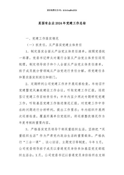 / 【七哥公文】2024年:某国有企业2024年党建工作总结+更多免费公文+VX:QiGeGongWen2024