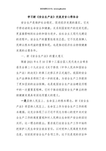 【七哥公文】2024年:学习新《安全生产法》交流发言心得体会+更多免费公文+VX:QiGeGongWen2024