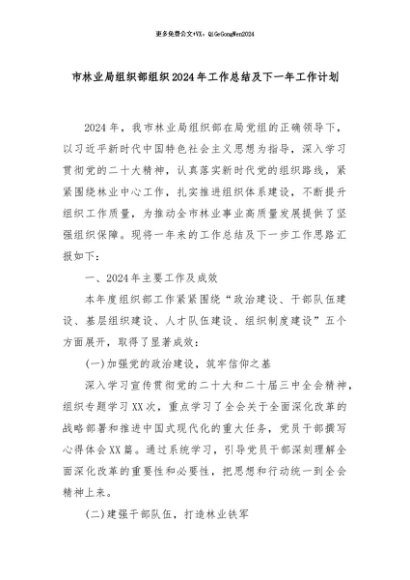 【七哥公文】2024年:市林业局组织部组织2024年工作总结及下一年工作计划+更多免费公文+VX:QiGeGongWen2024
