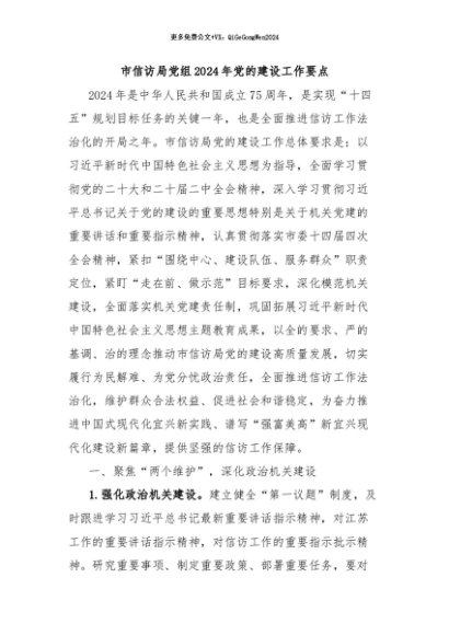 / 【七哥公文】2024年:市信访局党组2024年党的建设工作要点+更多免费公文+VX:QiGeGongWen2024
