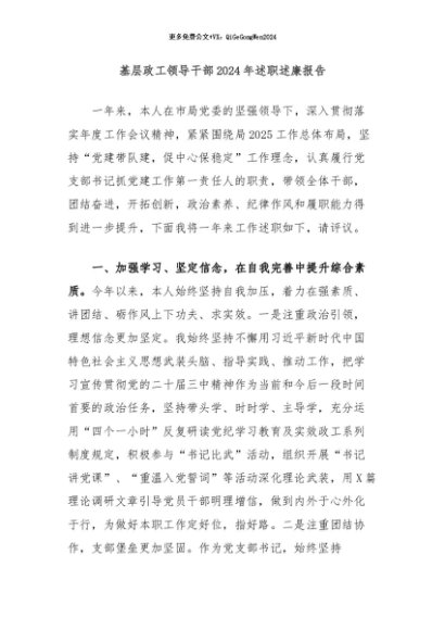 / 【七哥公文】2024年:基层政工领导干部2024年述职述廉报告+更多免费公文+VX:QiGeGongWen2024