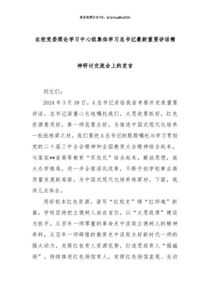 【七哥公文】2024年:在校党委理论学习中心组集体学习总书记最新重要讲话精神研讨交流会上的发言+更多免费公文+VX:QiGeGongWen2024