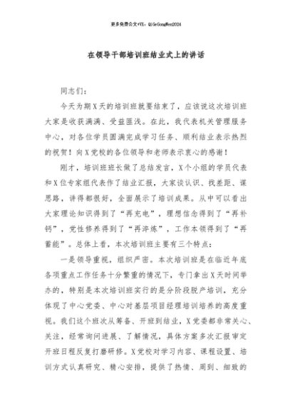 / 【七哥公文】2024年:在领导干部培训班结业式上的讲话+更多免费公文+VX:QiGeGongWen2024