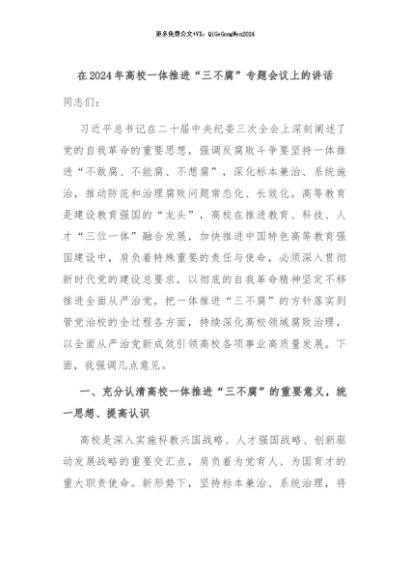 【七哥公文】2024年:在2024年高校一体推进“三不腐”专题会议上的讲话+更多免费公文+VX:QiGeGongWen2024