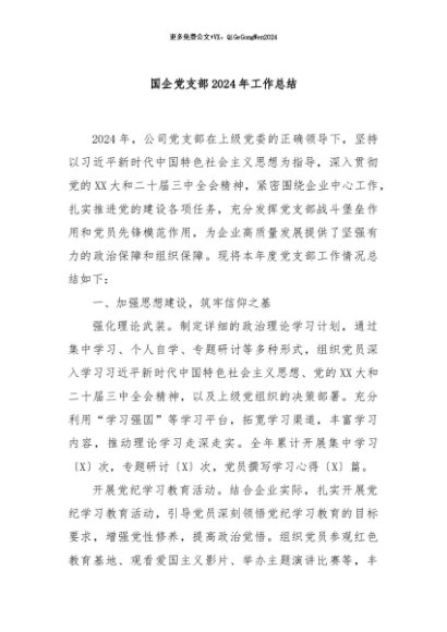 / 【七哥公文】2024年:国企党支部2024年工作总结+更多免费公文+VX:QiGeGongWen2024