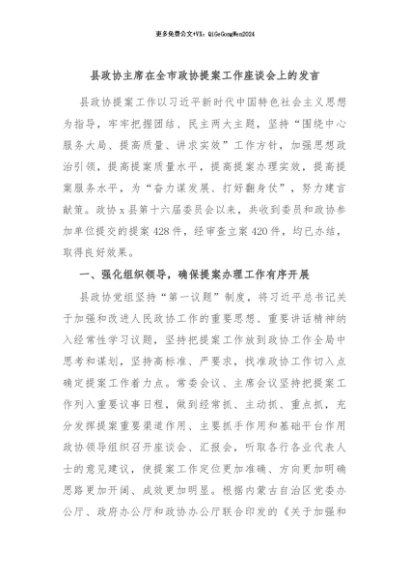 / 【七哥公文】2024年:县政协主席在全市政协提案工作座谈会上的发言+更多免费公文+VX:QiGeGongWen2024