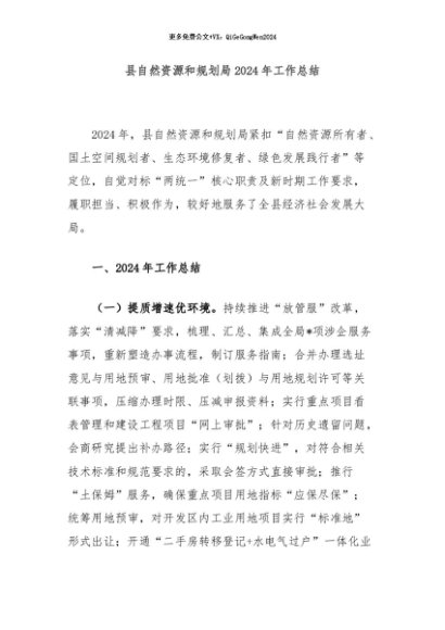 / 【七哥公文】2024年:县自然资源和规划局2024年工作总结+更多免费公文+VX:QiGeGongWen2024