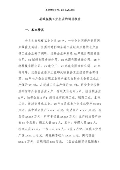 / 【七哥公文】2024年:县域规模工业企业的调研报告+更多免费公文+VX:QiGeGongWen2024