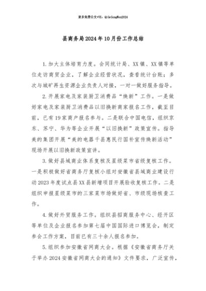 / 【七哥公文】2024年:县商务局2024年10月份工作总结+更多免费公文+VX:QiGeGongWen2024