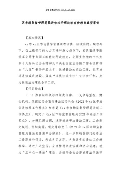 / 【七哥公文】2024年:区市场监督管理局推进依法治理法治宣传教育典型案例+更多免费公文+VX:QiGeGongWen2024