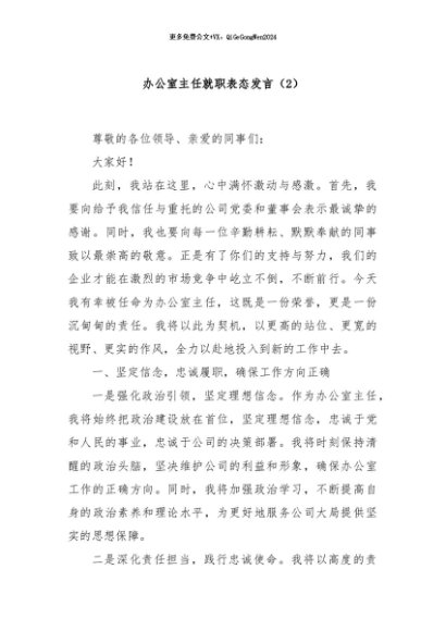 / 【七哥公文】2024年:办公室主任就职表态发言(2)+更多免费公文+VX:QiGeGongWen2024