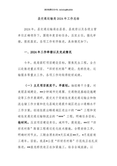 / 【七哥公文】2024年:县交通运输局2024年工作总结+更多免费公文+VX:QiGeGongWen2024