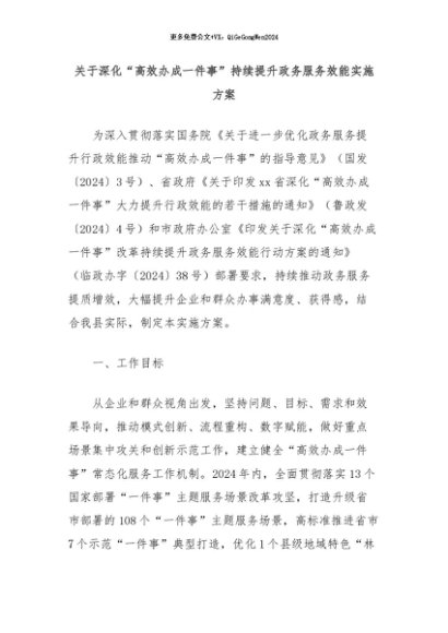 【七哥公文】2024年:关于深化“高效办成一件事”持续提升政务服务效能实施方案+更多免费公文+VX:QiGeGongWen2024