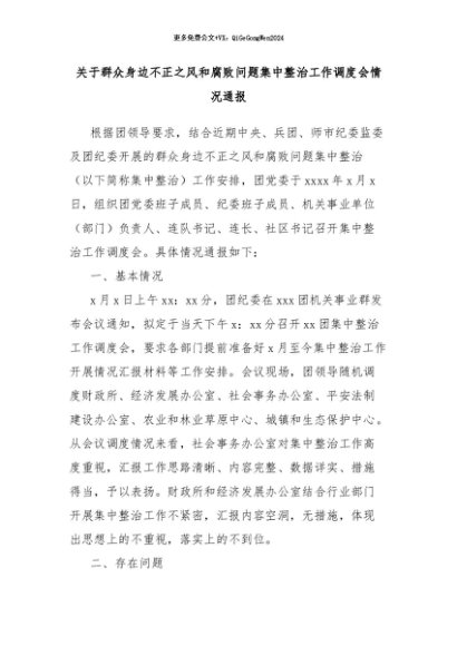 【七哥公文】2024年:关于群众身边不正之风和腐败问题集中整治工作调度会情况通报+更多免费公文+VX:QiGeGongWen2024