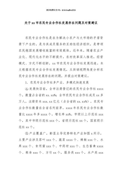 / 【七哥公文】2024年:关于xx市农民专业合作社发展存在问题及对策建议+更多免费公文+VX:QiGeGongWen2024