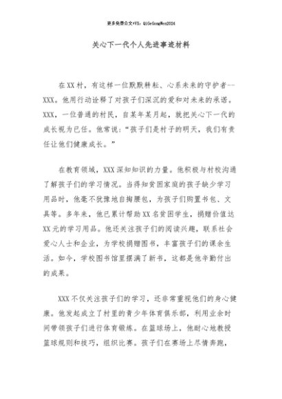 / 【七哥公文】2024年:关心下一代个人先进事迹材料+更多免费公文+VX:QiGeGongWen2024