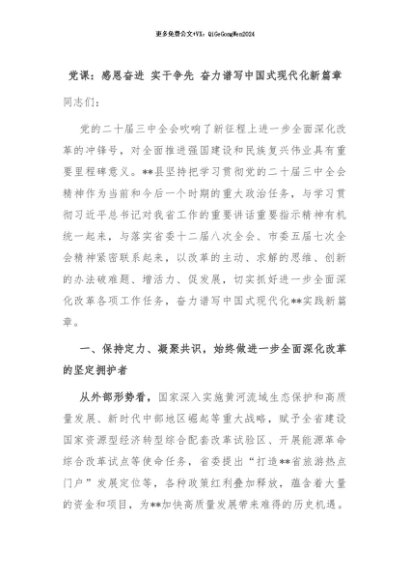 【七哥公文】2024年:党课:感恩奋进 实干争先 奋力谱写中国式现代化新篇章+更多免费公文+VX:QiGeGongWen2024