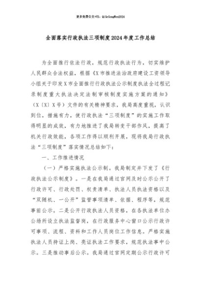 / 【七哥公文】2024年:全面落实行政执法三项制度2024年度工作总结+更多免费公文+VX:QiGeGongWen2024