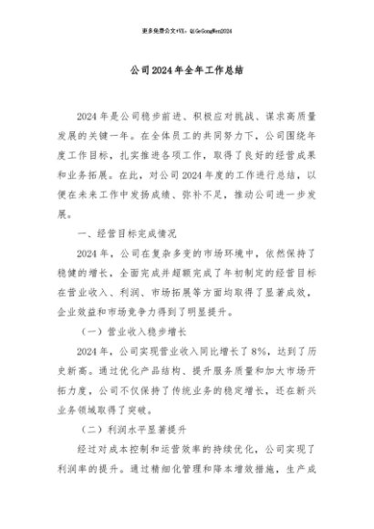 / 【七哥公文】2024年:公司2024年全年工作总结+更多免费公文+VX:QiGeGongWen2024