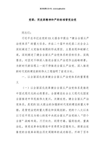 / 【七哥公文】2024年:党课:用改革精神和严的标准管党治党+更多免费公文+VX:QiGeGongWen2024
