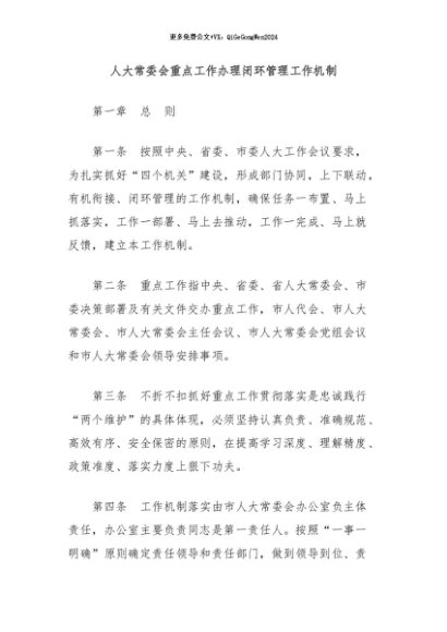 【七哥公文】2024年:人大常委会重点工作办理闭环管理工作机制+更多免费公文+VX:QiGeGongWen2024