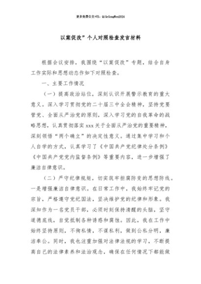 / 【七哥公文】2024年:以案促改”个人对照检查发言材料+更多免费公文+VX:QiGeGongWen2024
