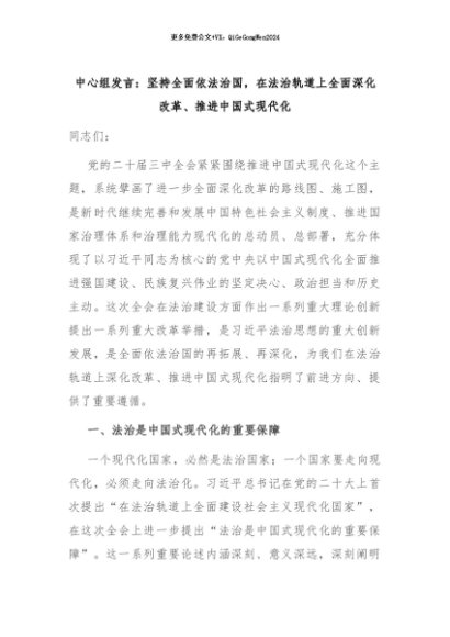 【七哥公文】2024年:中心组发言:坚持全面依法治国,在法治轨道上全面深化改革、推进中国式现代化+更多免费公文+VX:QiGeGongWen2024