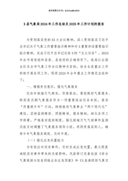 【七哥公文】2024年:X县气象局2024年工作总结及2025年工作计划的报告+更多免费公文+VX:QiGeGongWen2024