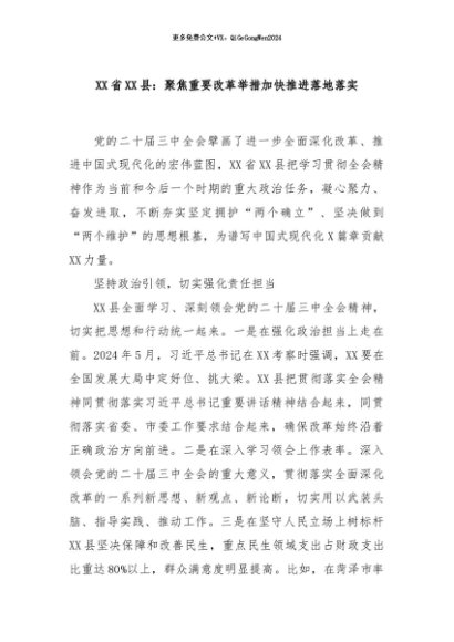 / 【七哥公文】2024年:XX省XX县:聚焦重要改革举措加快推进落地落实+更多免费公文+VX:QiGeGongWen2024