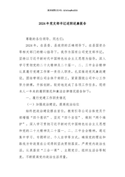 / 【七哥公文】2024年:2024年党支部书记述职述廉报告+更多免费公文+VX:QiGeGongWen2024