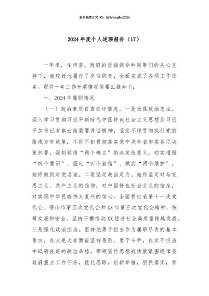 / 【七哥公文】2024年:2024年度个人述职报告(17)+更多免费公文+VX:QiGeGongWen2024