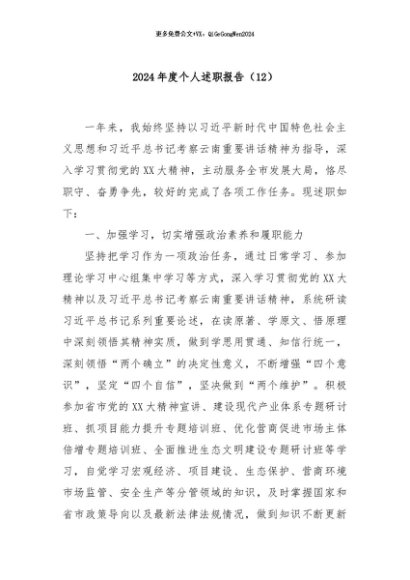 / 【七哥公文】2024年:2024年度个人述职报告(12)+更多免费公文+VX:QiGeGongWen2024