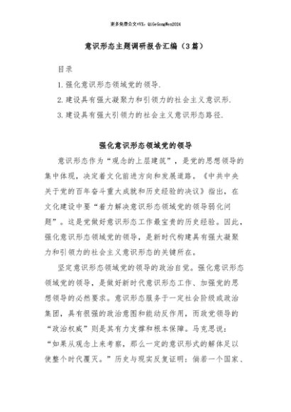 / 【七哥公文】2024年:(3篇)意识形态主题调研报告汇编+更多免费公文+VX:QiGeGongWen2024