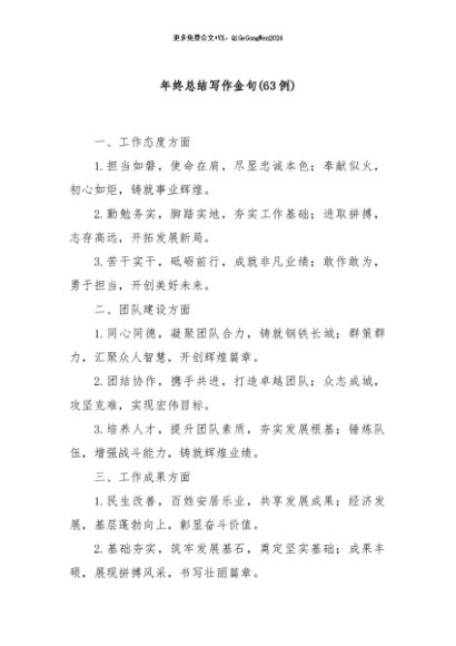 / 【七哥公文】2024年:(63例)年终总结写作金句+更多免费公文+VX:QiGeGongWen2024