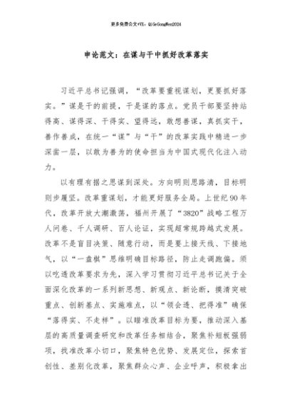 / 【七哥公文】2024年:申论范文:在谋与干中抓好改革落实+更多免费公文+VX:QiGeGongWen2024