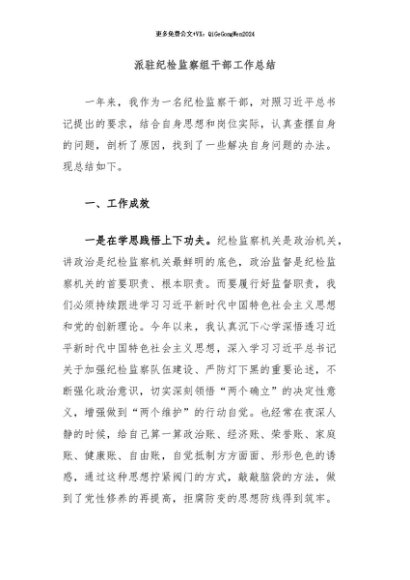 / 【七哥公文】2024年:派驻纪检监察组干部工作总结+更多免费公文+VX:QiGeGongWen2024