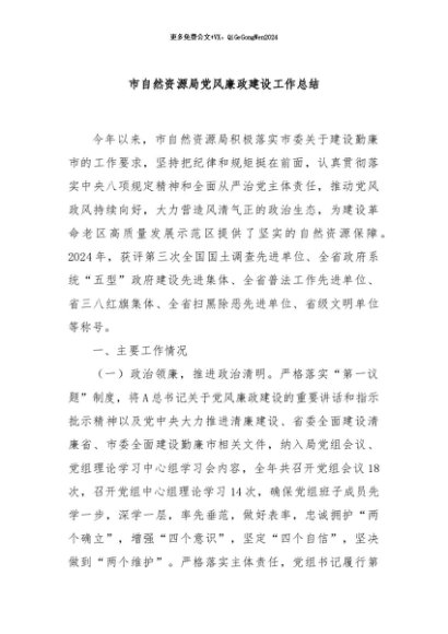 / 【七哥公文】2024年:市自然资源局党风廉政建设工作总结+更多免费公文+VX:QiGeGongWen2024