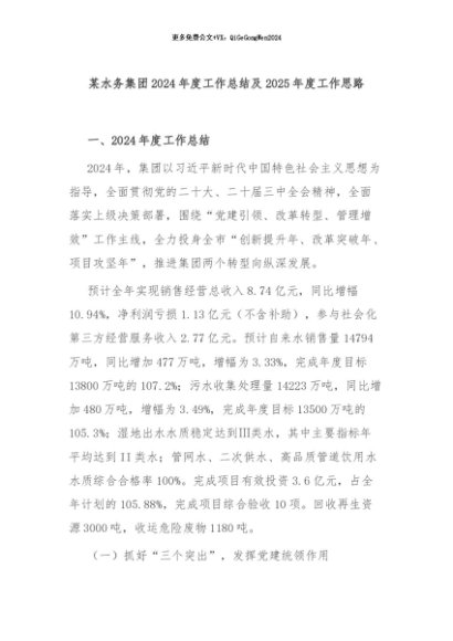【七哥公文】2024年:某水务集团2024年度工作总结及2025年度工作思路+更多免费公文+VX:QiGeGongWen2024